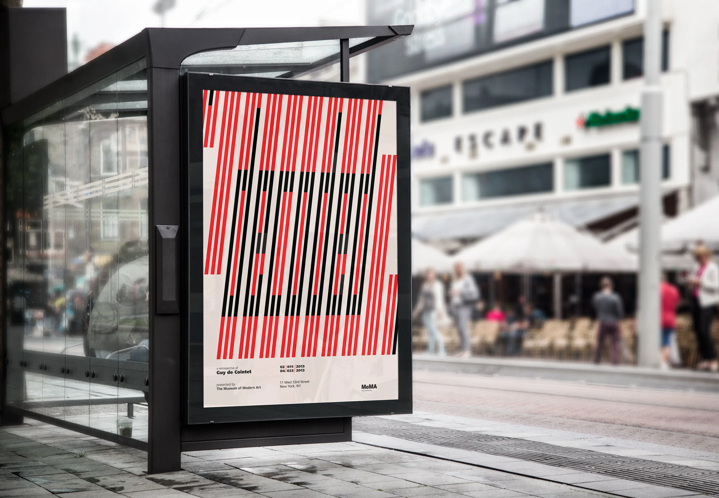 After researching painter Guy de Cointét and designer Wim Crouwel, I attempted to design an exhibition poster for a retrospective of de Cointet's artwork at the Museum of Modern Art in the style of Wim Crouwel.